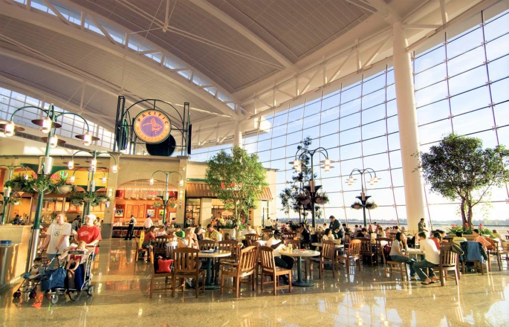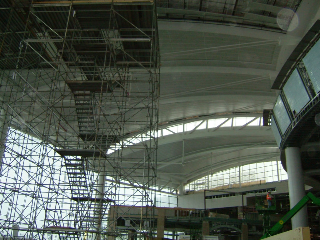 Material Scope: Domed perforated metal ceiling at dining hall.